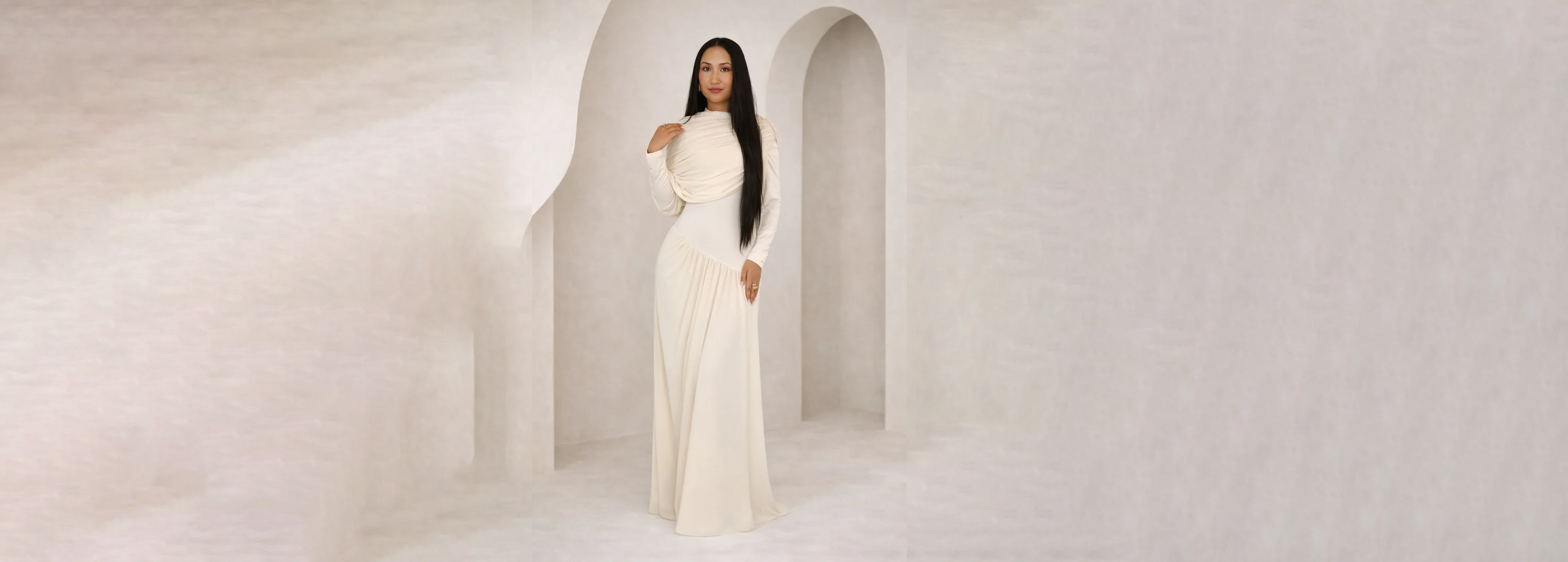 Born from the idea that modesty is not limitation but power, DOMINA designs timeless silhouettes that flow with the body and adapt to the wearer. Each piece is created to feel effortless, elevated, and quietly bold — made for women who value grace without compromise.